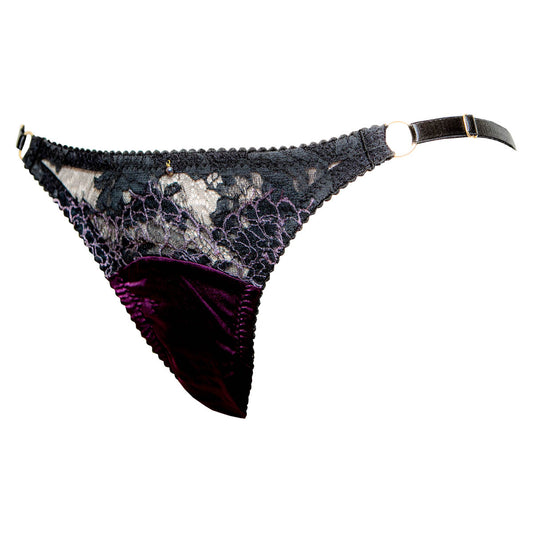 Cassiopeia French Lace Low Rise Tanga Briefs - Onyx