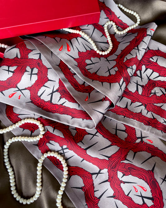 'Entanglement II' - Red & Grey - Silk Scarf By Logandria